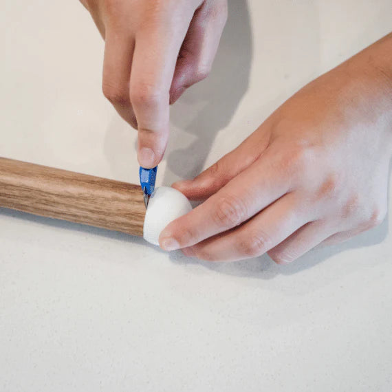 For the back legs, wrap the adhesive so the seam joins on the opposite side of the push button. That way, the seam will be out of your line of vision. Repeat all other steps.